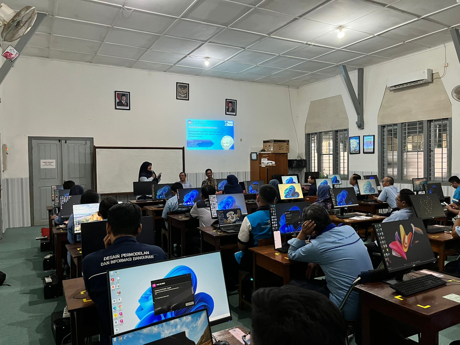 Yogyakarta, 20 Agustus 2025 – Universitas Negeri Yogyakarta (UNY) melalui Fakultas Teknik Program Studi Pendidikan Teknik Sipil dan Perencanaan (PTSP) menyelenggarakan pelatihan Building Information Modeling (BIM) bagi guru SMK se-Daerah Istimewa Yogyakarta. Kegiatan yang berlangsung pada 19–20 Agustus 2025 ini dipusatkan di Laboratorium Komputer Bangunan Ruang 16 SMKN 3 Yogyakarta dan diikuti oleh 26 guru dari berbagai sekolah kejuruan di DIY.