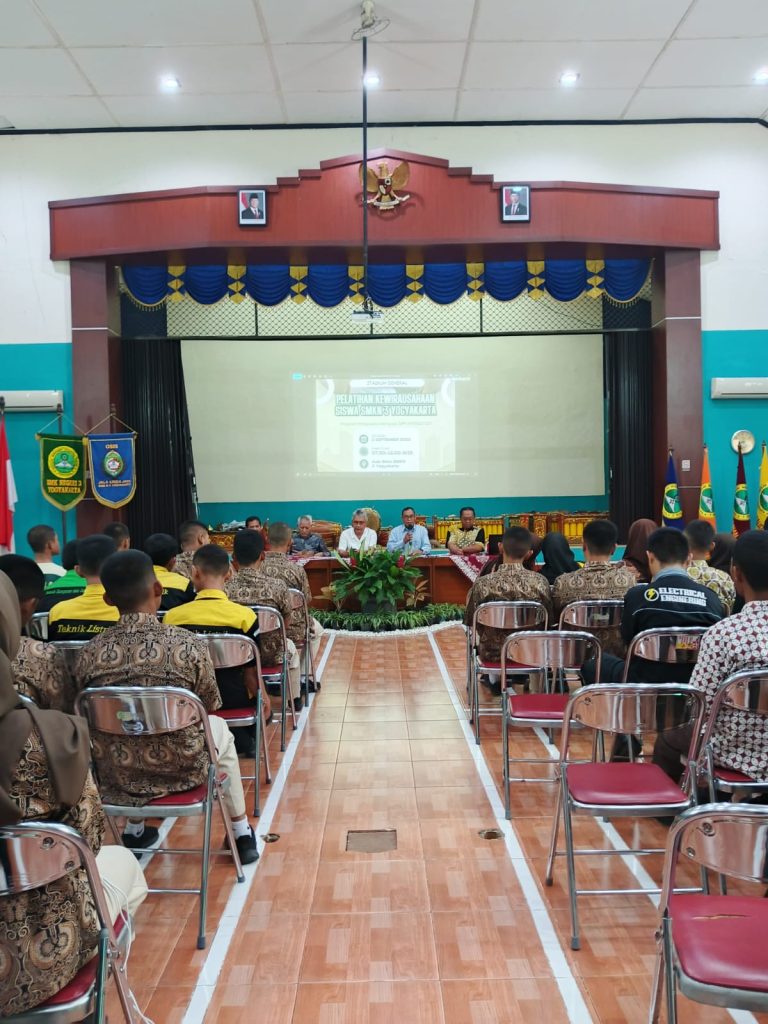 Yogyakarta, 2 September 2025 – SMKN 3 Yogyakarta menyelenggarakan Stadium General Pelatihan Kewirausahaan pada Selasa (2/9) pukul 07.30–12.00 WIB di Aula Bima sekolah. Kegiatan ini menghadirkan narasumber dari program Pengusaha Mengajar Dewan Pimpinan Provinsi (DPP) Asosiasi Pengusaha Indonesia (APINDO) DIY dengan tujuan membekali siswa dalam menghadapi dinamika dunia usaha dan industri. Materi yang disampaikan berfokus pada tantangan sukses, tumbuh, menghadapi pilihan, serta hambatan yang mungkin dihadapi dalam dunia usaha. Narasumber juga menekankan pentingnya memahami ciri-ciri kewirausahaan yang berhasil, antara lain keberanian mengambil risiko, inovasi, dan konsistensi dalam menjalankan usaha.